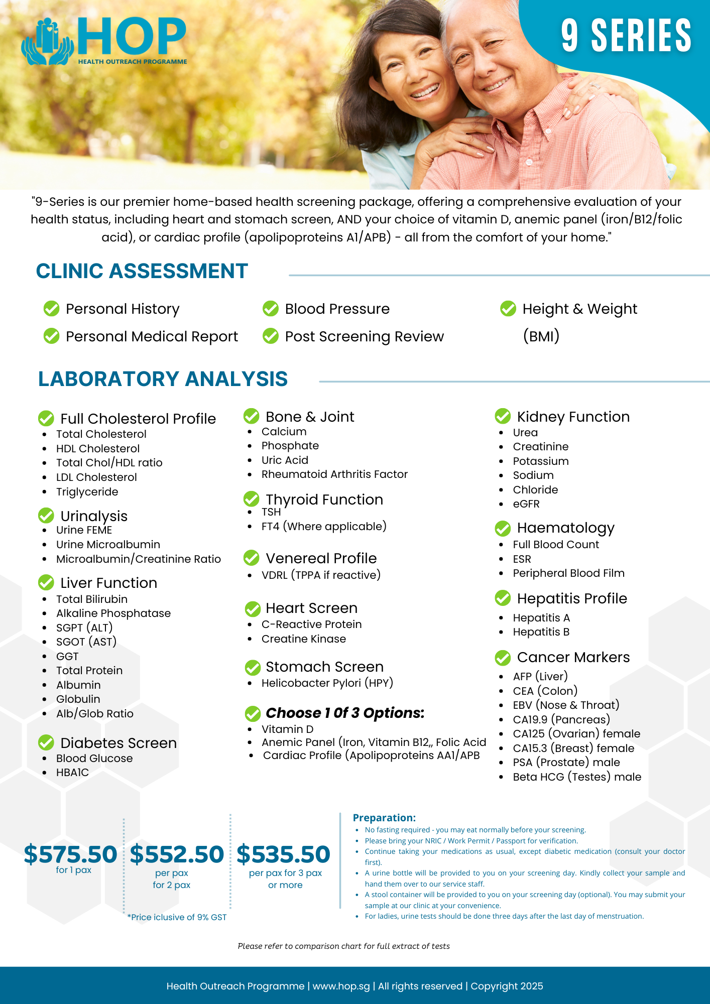 9-Series is our ultimate home-based health screening package It is the pinnacle of our SERIES designed to provide you with the most extensive and in-depth evaluation of your health status all done at the comforts of your home